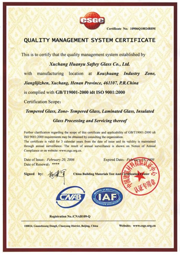 2004年,許昌環(huán)宇安全玻璃有限責任公司正式成立